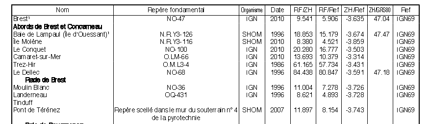 La valeur à utiliser est a valeur indiquée dans la colonne ZH/Ref. Dans l’exemple ci-dessus, -3.635. cette valeur doit être ajoutée à toutes les valeurs de profondeur pour le ramener à la référence terrestre. Mais n’oubliez pas de changer de signe aux profondeurs!