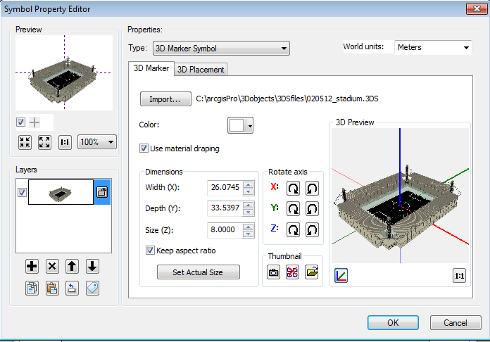 Dans la fenêtre « Type » sélectionnez « Symbole ponctuel 3D » puis parcourez les fichiers pour pointer sur votre symbole.