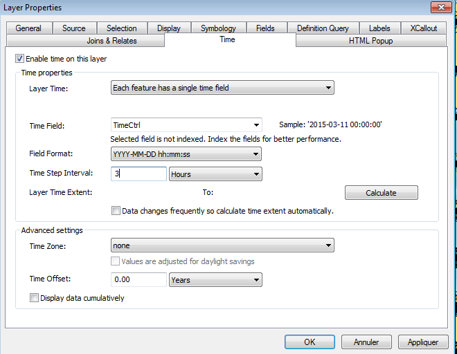 Cochez la case « Activer le temps pour cette couche »