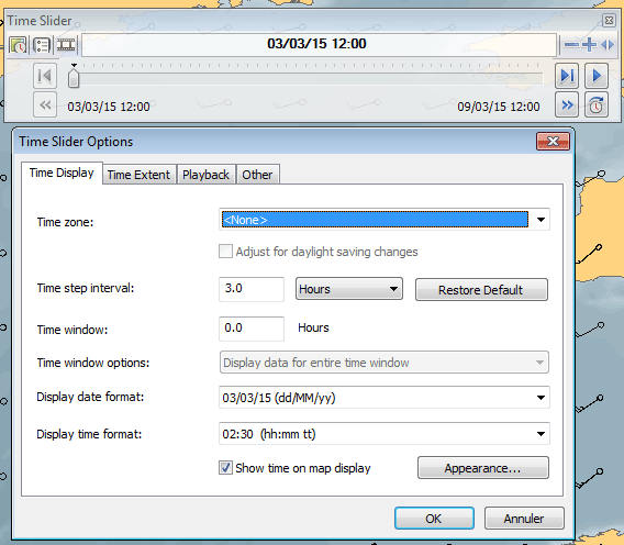 Vérifiez que le pas de temps est bien de 3 heures et que la fenêtre temporelle est à 0 heures.