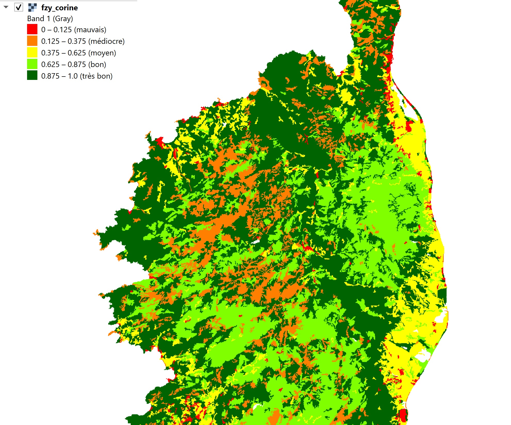 Dans certains cas, les données ne sont pas continues (altitude, pente, distance…), mais discrètes, c’est-à-dire constituées de classes.Chaque pixel correspond alors à une catégorie : un type de sol, un usage du sol, un niveau de…
